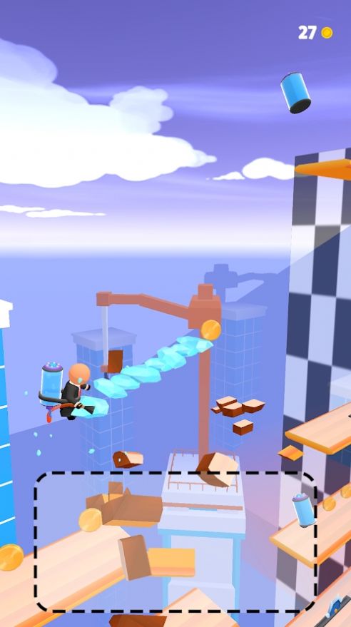 4、收集尽可能多的冰,并在脚下画一条结冰的路,以达到目标,准备绘制一条结冰的冲浪路线。