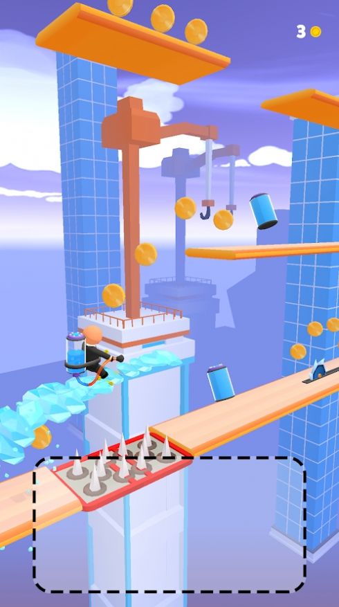 3、需要操控角色不断向前,使用装备来画线通过各种障碍和陷阱,收集道路中的道具进行助力。