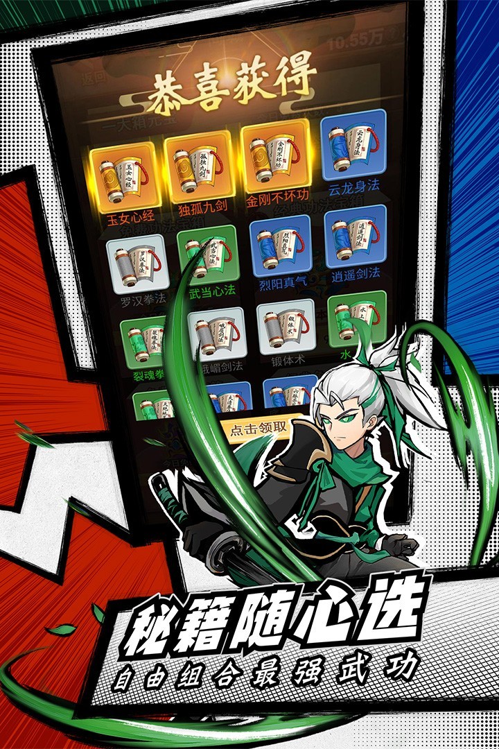 1.通过将各种武功自由的组合能够快速的完成闯关,成为最终的胜利者。
