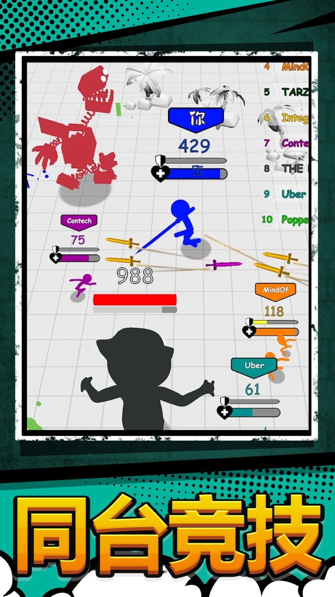 2、自行设计或选择自己的角色,使游戏更加个性化。你可以自己设计搞怪的小火柴人并在战场上体验战斗的刺激。