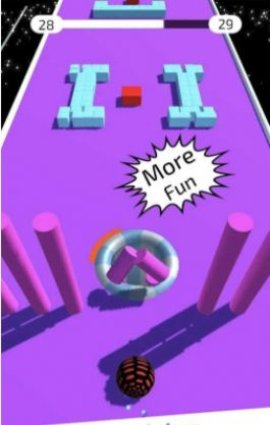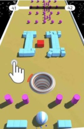 2、球沿直线向前移动,通过上下左右滑动屏幕来控制圆孔的位置,清除道路上的障碍物。