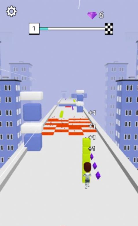 1、是一款简单而有趣的跑酷游戏,玩家只需操纵小方块在无尽的跑道上躲避障碍