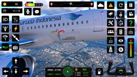 2、全面的飞机控制:印尼飞机模拟器提供了全面的飞机控制,包括引擎加速、高度控制、是否需要降落准备等多种控制方式,使玩家能够更加自由地操作自己的飞机。