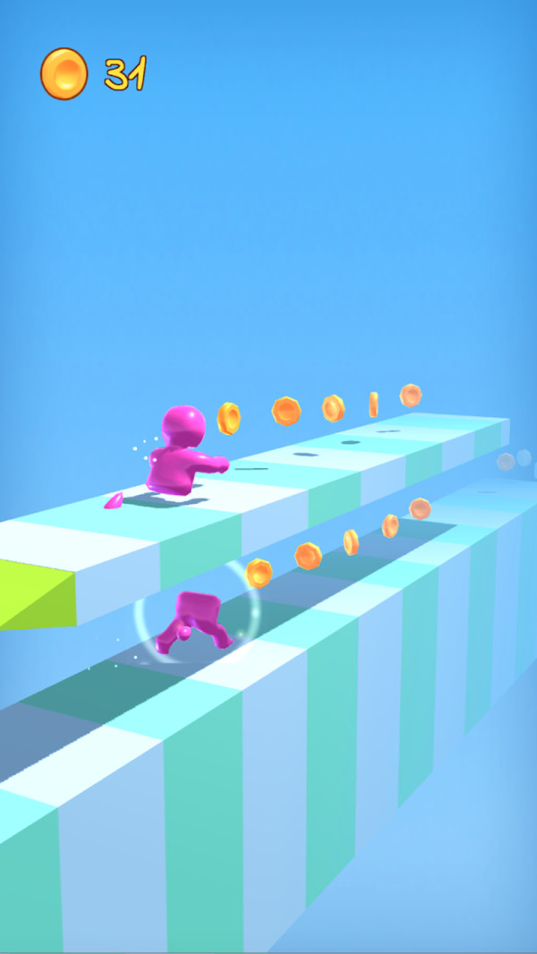 在前进的道路上还可以收集金币,玩家可以通过改变自己的形状来进行收集;