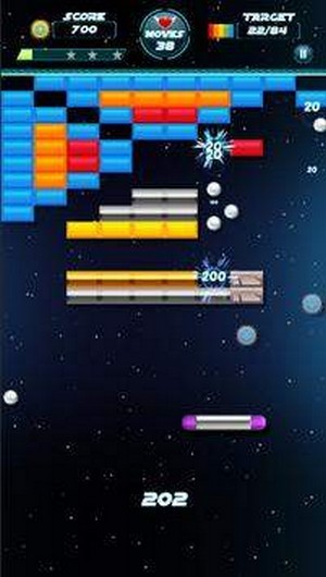 操作比较简单,只需要轻扫或者敲击屏幕进行瞄准,通过射出去的球来破坏砖块