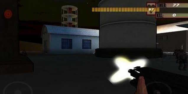 动作有点小麻烦,虚拟按键操作,控制角色不停地移动,同时注意瞄准射击周围的僵尸,不要让它们靠近你,给自己留出足够的空间。