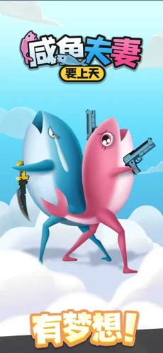1、咸鱼夫妻要上天是一款非常魔性的休闲小游戏。
