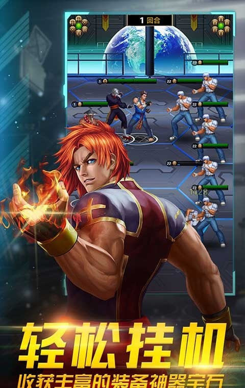KOF全民格斗是一款非常好玩的手机格斗闯关游戏,这款游戏采用放置的游戏玩法,在游戏当中玩家们要组建自己的格斗团队来进行冒险挑战,游戏拥有超多的关卡设计,各种的格斗英雄角色等你来获取,各种不同性质的游戏角色,进行各种不同类型的搭配会发挥你想象不到的战斗力,赶快下载吧。