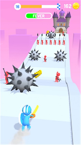 2、玩家需要在跑酷中需要击败各种不同的敌人获得大量的奖励和金币,赛道中有着众多不同的障碍物。