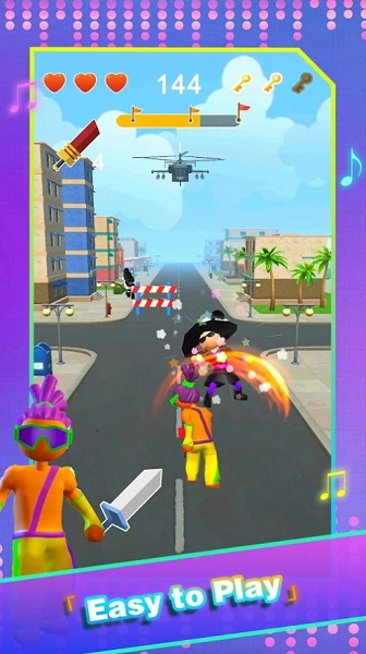 1、音乐冲冲冲是一款冲锋跑酷的音乐游戏,玩家们正在游戏中扮演一名喜欢音乐的狂热男子。