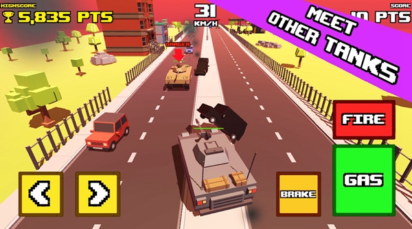 3、司机正试图撞毁并射击疯狂路市道路上的每辆车和战争机器。驾驶快速的坦克清理城市!