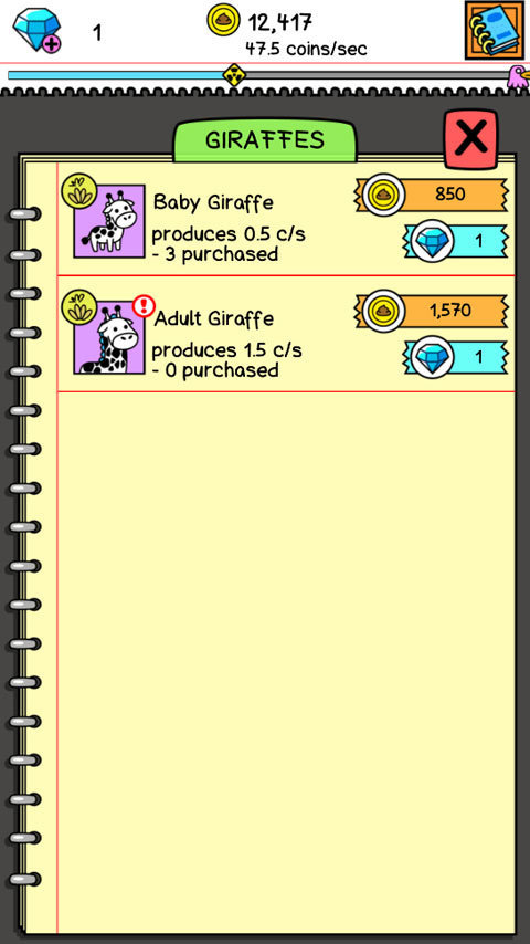 点击左下角的长颈鹿图标,购买新的一只长颈鹿放置到屏幕上。