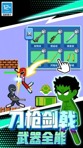 1、玩家需要控制着一个火柴人进行战斗,打败所有的敌人。