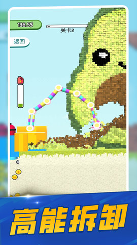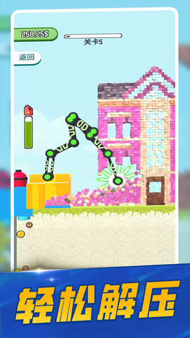 2、丰富的道具系统:玩家可以通过消耗金币获得更多的道具,例如破坏球、铁锤、爆炸物等等。不同的道具组合可以让拆除的效率更高。