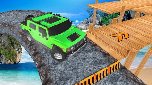 4、以奇妙而令人惊叹的吉普车爬坡轨道作为汽车3d驾驶员开始疯狂的越野特技。