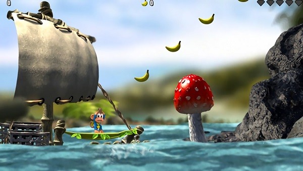 游戏是一个不断跳跃的过程,在丛林之中收集香蕉和黑钻石。