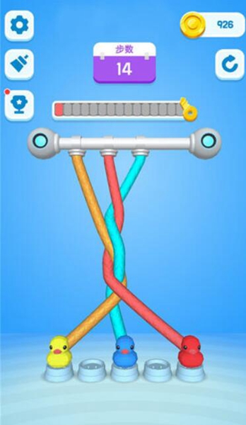 一款拥有丰富的挑战性游戏,每根绳子的顺序是不一样的,玩家需要按照开锁的顺序一步一步进行。