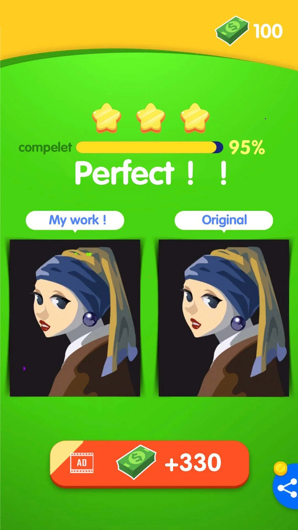 4、这个游戏有几十幅世界名画,玩家可以在游戏中复制,每一关都有问题,玩家必须完成关卡的绘制,这样玩家才能轻松通过。