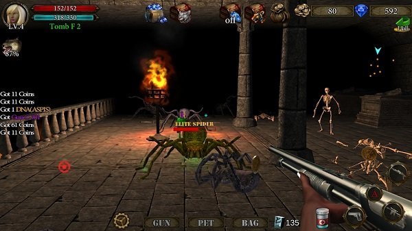 地牢分为许多区域和墓葬。随着地牢数量的加深,它将面对更加凶猛的怪物,生存也越来越困难。地下城猎人必须抓住飞机并使用各种枪支的属性来匹配射击怪物并拯救子弹,以便怪物可以在地牢中击败。你还应该留意你的宠物。它们可以帮助你捕捉怪物,但它们会成为怪物的猎物。