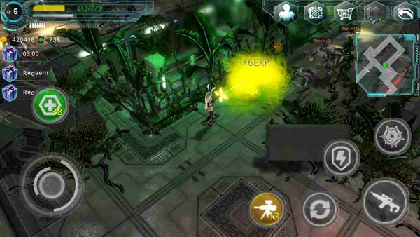 2、在无数的异形群中杀出,在每个地区不停地清扫着异形群的老巢,将其全部消灭。