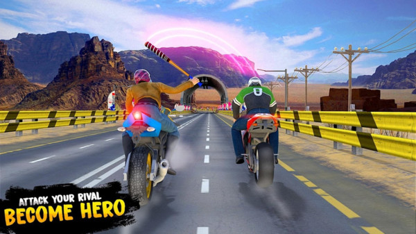 暴力摩托英雄将街机格斗以及驾驶竞速的玩法进行了完美的结合,玩家们在游戏内能够体验到极为激情的竞速比赛,这里的挑战不仅仅是比速度,玩家们还能够使用武器来向对手发起攻击,让你能够更加轻松的完成驾驶任务,并且还能够解锁更多的新式武器,让你拥有更加惊人的战斗力,快来下载游戏体验激情的竞速挑战吧。