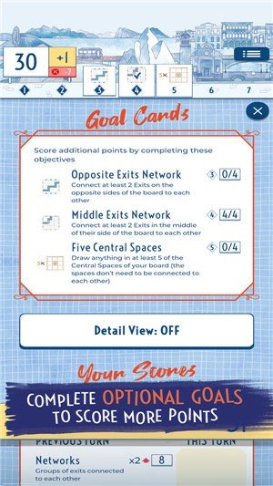 每轮您将不得不掷骰子,并使用可用的路线来建立您的运输网络,并连接尽可能多的出口。