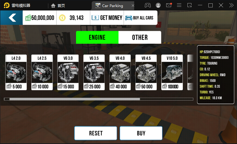在升级界面,你可以对汽车的所有配件进行升级