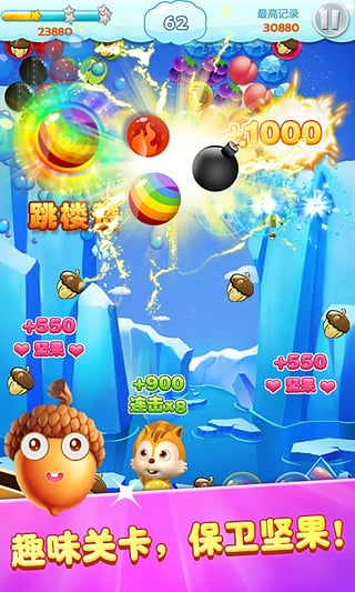 1、丰富多样的游戏道具:游戏中有很多不同的道具,如闪电泡泡可以消除同行、同列泡泡,冰冻泡泡可以冻住周围的泡泡等等,多种道具组合搭配,玩法更加多样化。