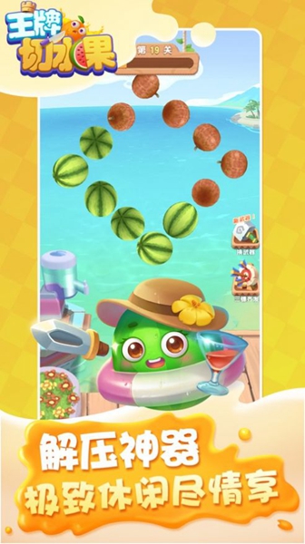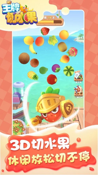 1、王牌切水果是个解压游戏,游戏很容易操作,还有很多关卡等着你。