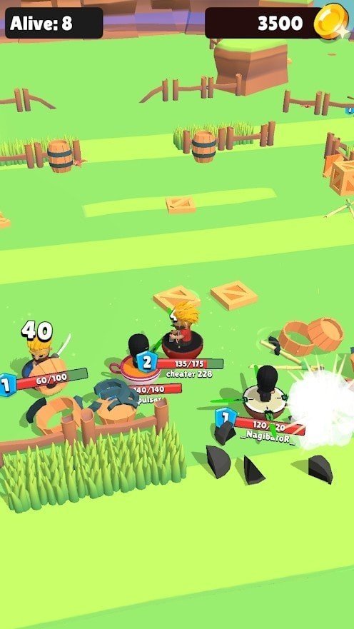 漩涡竞技场是一款非常有趣的动作冒险竞技游戏,随机匹配其他玩家加入到战场之中,尽快找到更多强大的武器来保护自己,躲避在掩体和草丛中可以偷袭你的对手,灵活的走位,完美的操作,成为最后的存活者,你就胜利了。