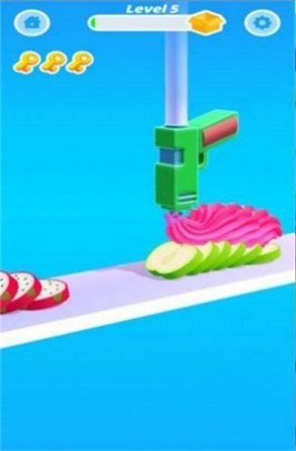 3、玩家在游戏中模拟制作蛋糕,添加你喜欢的奶油,并将其打造成你喜欢的各种图案和形状。