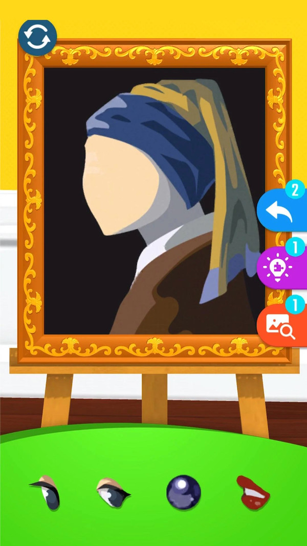 3、游戏中有几十幅世界名画!操作简单方便,只需动动手指即可达到目的,充满乐趣,动动脑筋就能创作出你的名画。