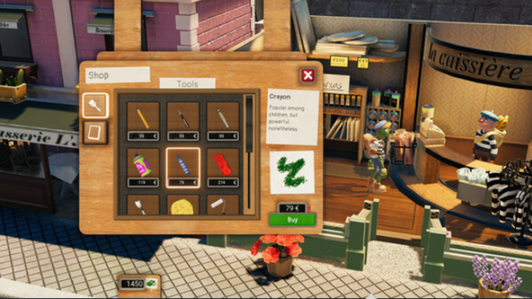 1、玩家在游戏中成为画家,通过绘画和销售赚取生活费。
