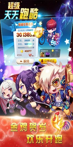 1、全球排行榜,让你与全世界玩家一起竞争,看看谁能成为超级天天跑酷的最强王者;