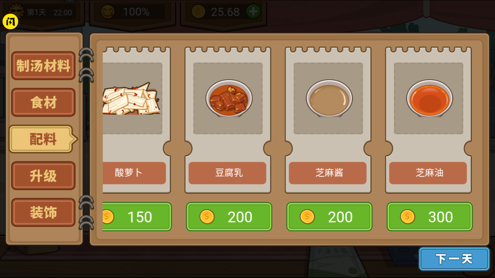 随着金币的不断积累,你可以购买更多食材,升级摊位,增加收入。