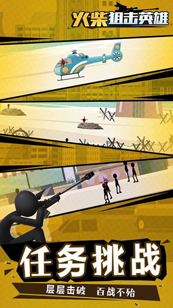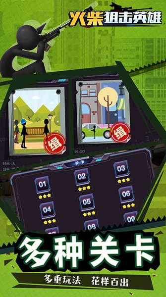火柴人是精英狙击手,为了保卫城市的安宁,惩罚不法分子。用你的千里眼,寻找罪犯,保护人们的安全。完成维和任务,有钱买更好的武器,武装自己。