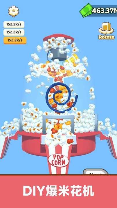 玩家可以升级和DIY自己的爆米花机器,通过自动生产爆米花获得收益