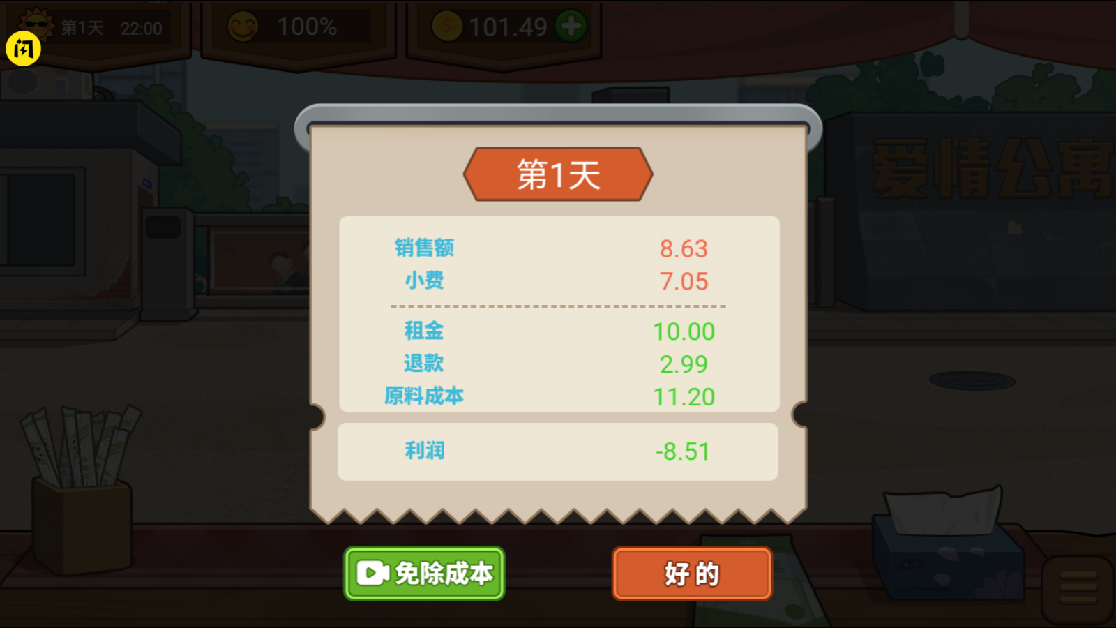 "真实"的经营方式,店铺需要你经常补货,你可以去菜市场自由采购自己所需要的食材。
