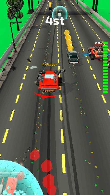 4、在其他车辆的碰撞中,许多金币将掉落,您可以在关卡轨道上收到各种奖励物品。