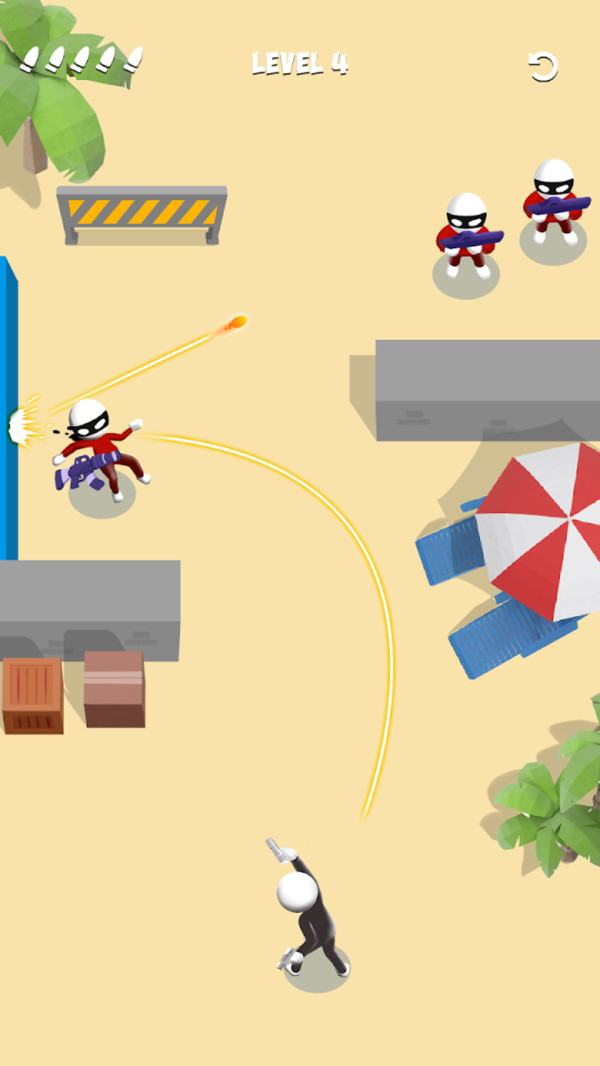 弯曲的子弹向玩家们展示了传说中的枪斗术,在进行闯关的时候,当你遇见敌人躲在墙壁后面,可以利用枪斗术来实现子弹的拐弯,并闯关命中隐藏的敌人,这么趣味性的挑战,真的是牛顿看到都会流泪,当你经过不断地挑战,相信你的枪法能够更上一层楼,轻松秒杀敌人完全不是问题,快来下载游戏展示枪斗术的威力吧。