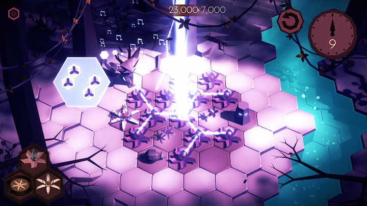 在得分方面,游戏似乎有bug,时间轮数实际是无限的,直到无花可合成或无地可种花时才会进入结算。种下和合成都会得分,但重点在于不能盲目种,需要更多规划方向和合成(合成的分相当高)。有时可以先无视芬的要求,以合成高级花为主来攒宝石片,再集中几局只想办法去完成芬的要求。