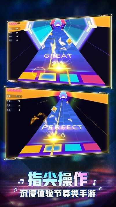 不同的音乐要求有不同的操作,有些音乐需要玩家轻轻点击,有些音乐需要玩家一直按。