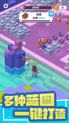 1、是一款采用画面滑稽、操作简单的卡通风格沙盒建造模拟游戏。