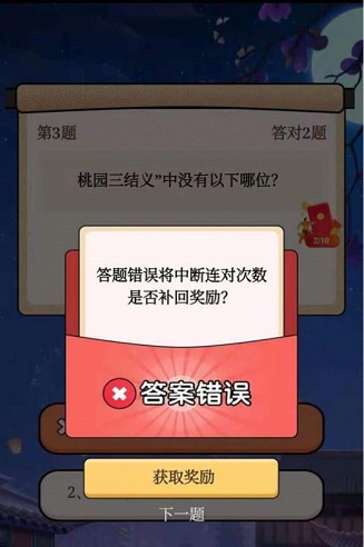 2、玩家每答对一道题,便可获取丰富的奖励。