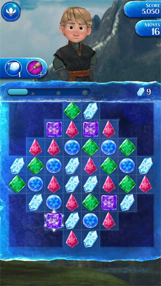 7、专为每位角色量身打造的强化道具 - 你可以运用安娜的「火把」将整排冰晶烧尽,或是用爱莎的「冰河」强化道具让颜色相同的所有冰晶神奇地消失!你可以试试汉斯的「长剑」将多颗冰晶直接砍除,还有更多更酷的强化道具等你发现!