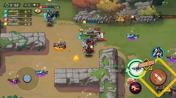 2、通过虚拟摇杆控制走位和射击方向,利用弓箭或者捡到的武器击败你的对手。