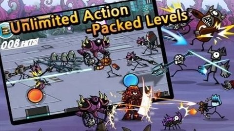 1、通过手机控制火柴人的移动,打倒你面前的敌人,不断的闯关。