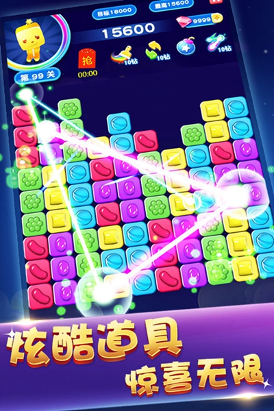1、消灭糖果星星是一款休闲闯关类游戏,在游戏中玩家可以可以在这里将所有的方块都清除掉。