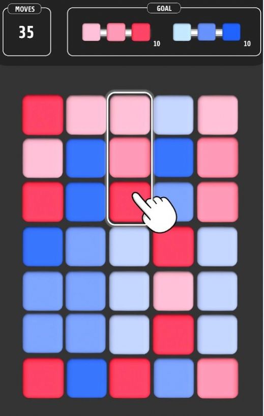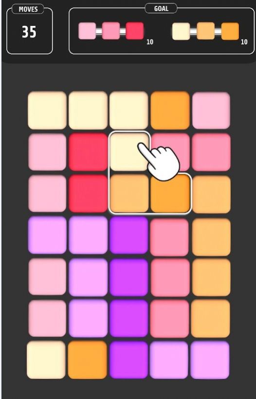1、先集中注意力,观察屏幕上的色块组合,找到相应的匹配颜色。