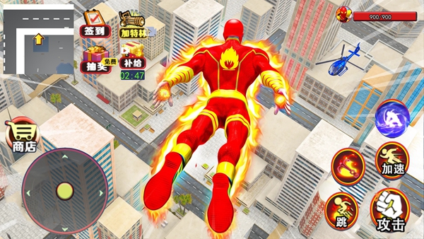 3、作为一名城市消防英雄,你要做的就是与超级反派战斗,结束城市的罪恶斗争。